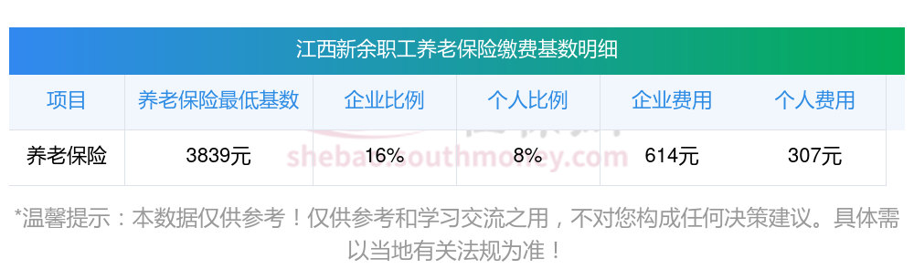 江西新余养老保险缴费基数2023-2024最新标准 一个月要交多少钱?