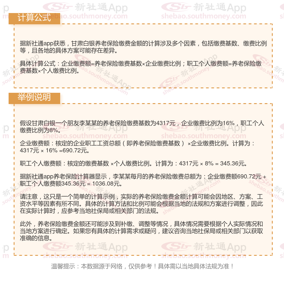 甘肃白银养老金计算公式2024年计算方法(在线计算器)