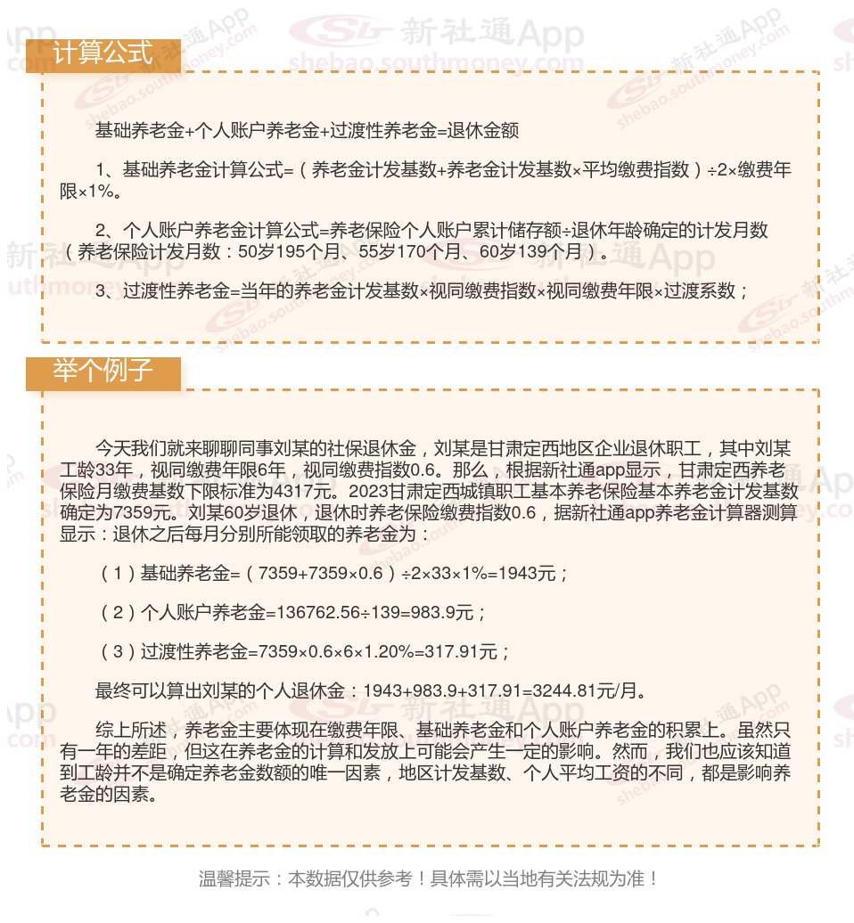 甘肃定西养老金计算公式2024年计算方法(在线计算器)