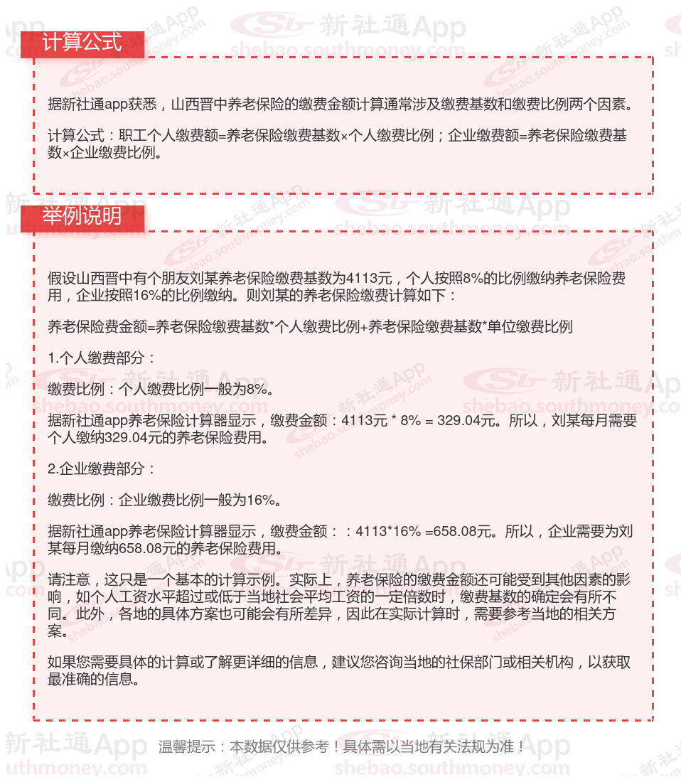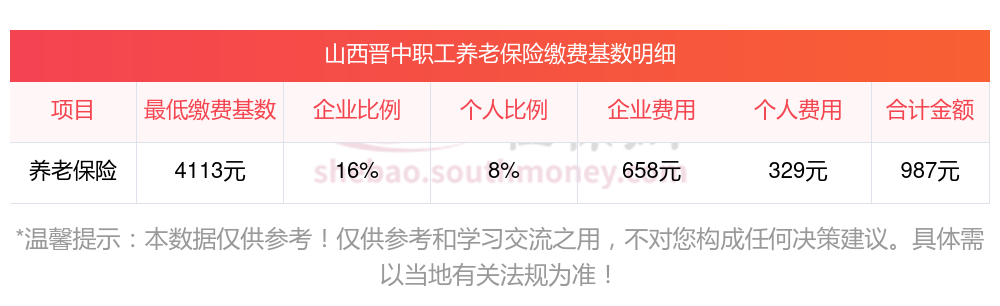 养老保险一个月要交多少钱?山西晋中缴费基数2023-2024年最新标准(最低)