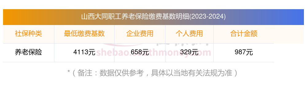 山西大同养老保险缴费基数2023-2024年最新标准(最低)一个月要交多少钱?举例说明
