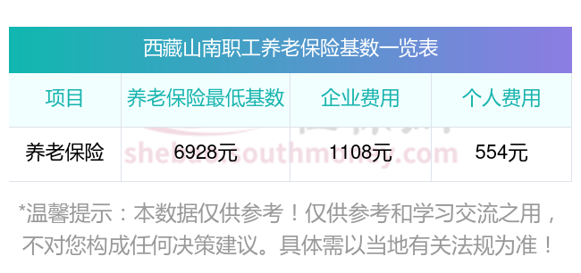 西藏山南养老保险最低缴费基数:6927.6元;