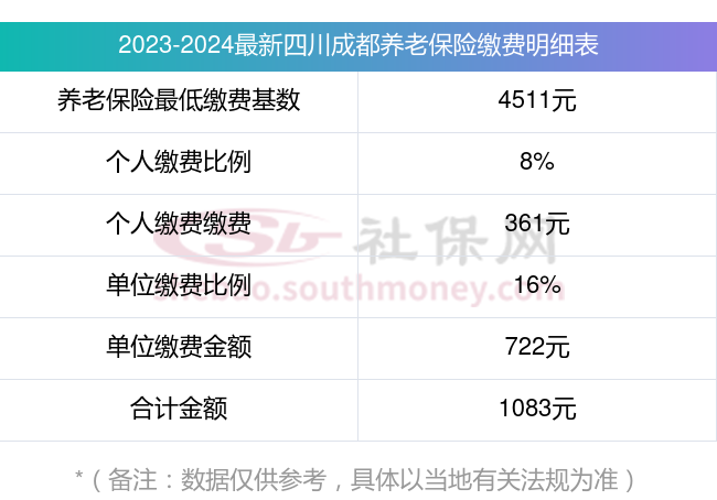据新社通app显示,四川成都养老保险缴费基数2023-2024年最新标准如下: