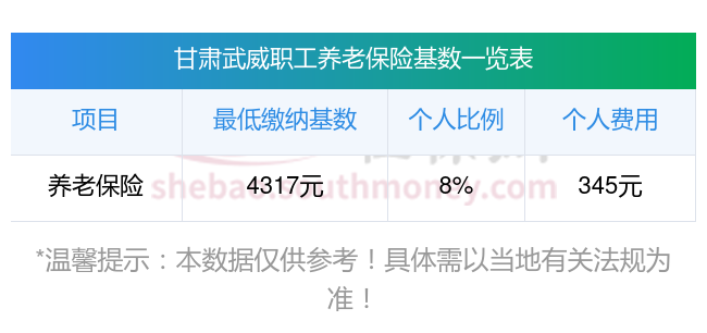 根据有关法规,甘肃武威企业职工基本养老保险缴费基数暂按不低于4317元;