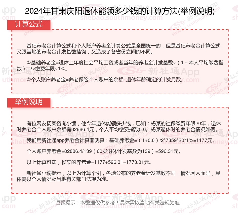 甘肃庆阳养老金计算公式2024年计算方法(在线计算器)