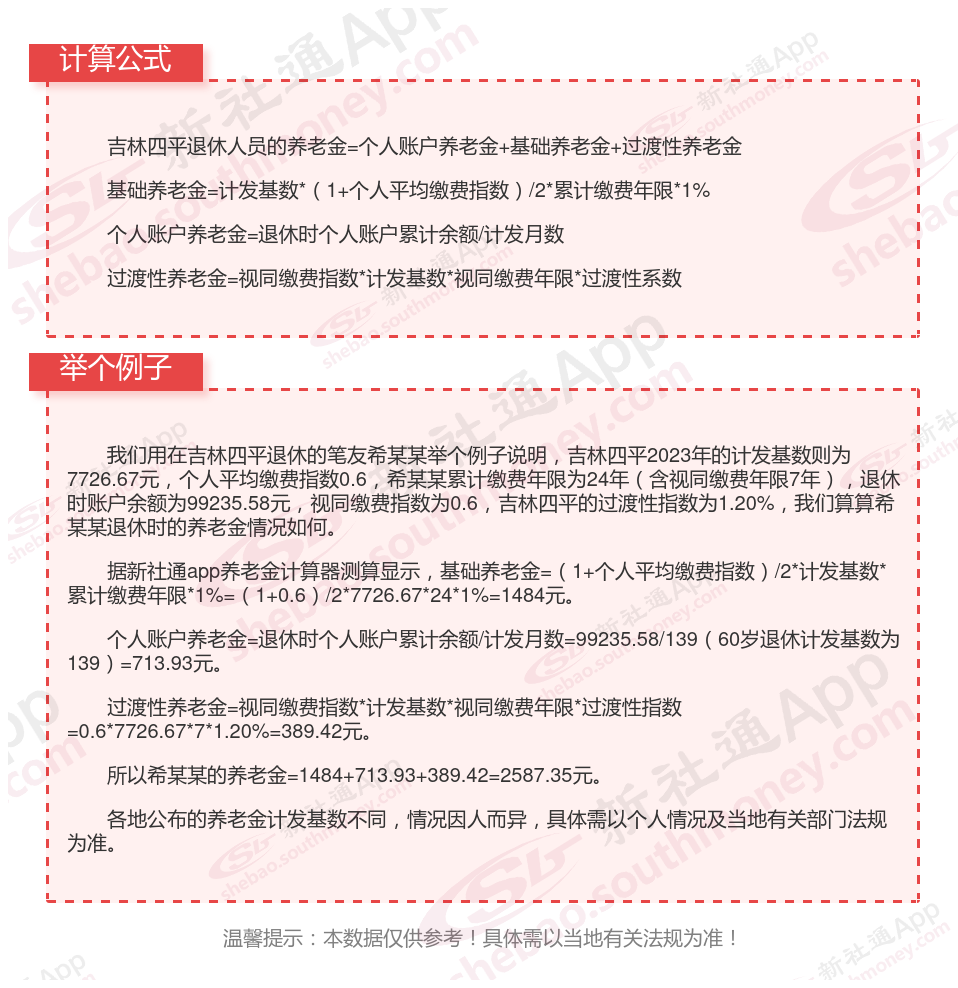 吉林四平养老金计算公式2024年计算方法(在线计算器)