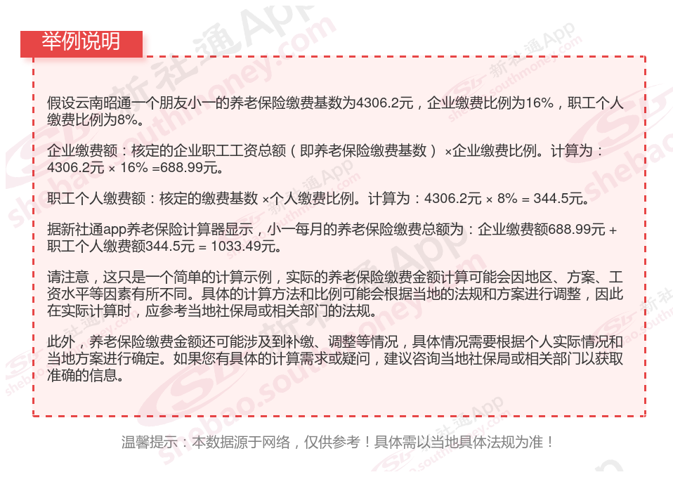 云南昭通养老保险缴费基数2023-2024最新标准,一个月要交多少钱?