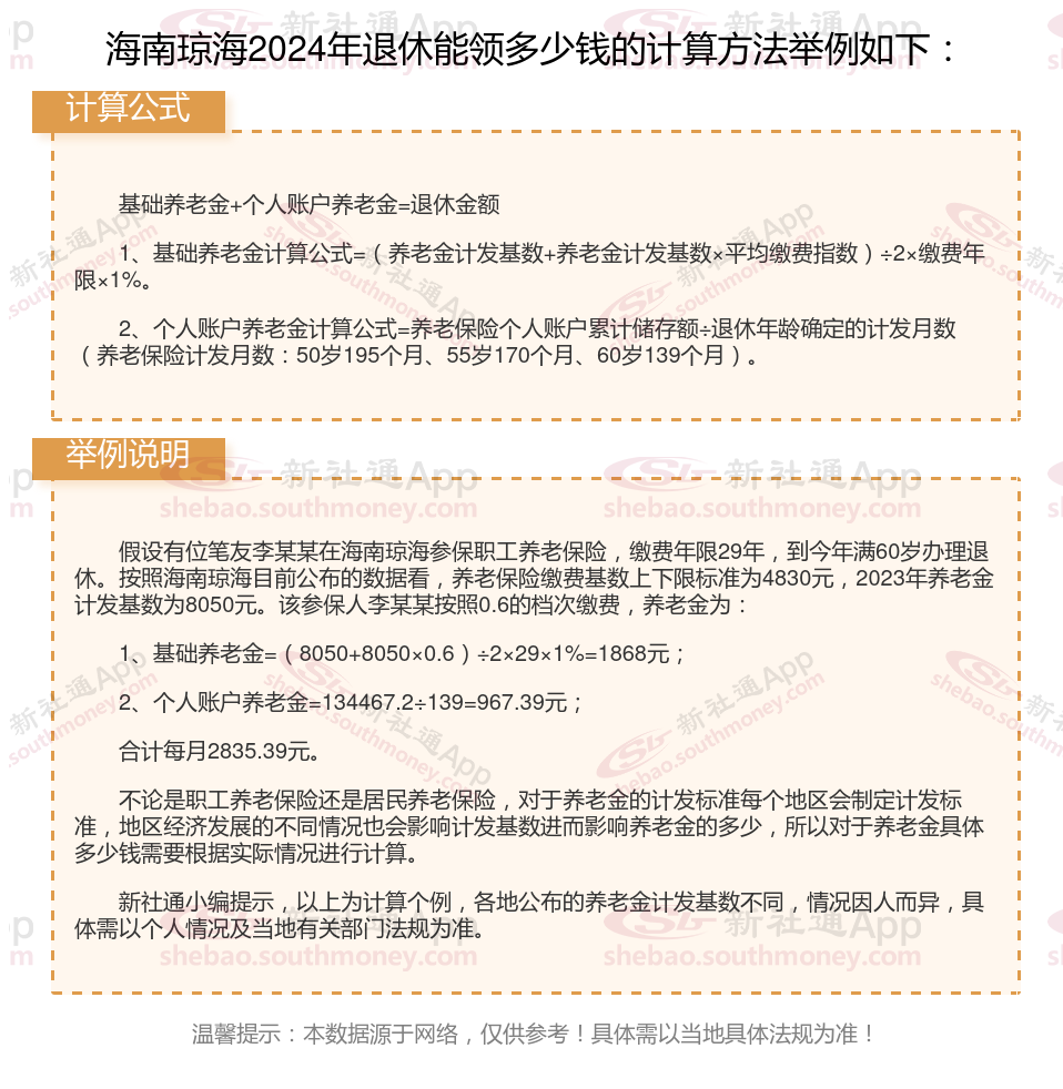海南琼海社保退休能领多少钱?(在线计算举例说明)