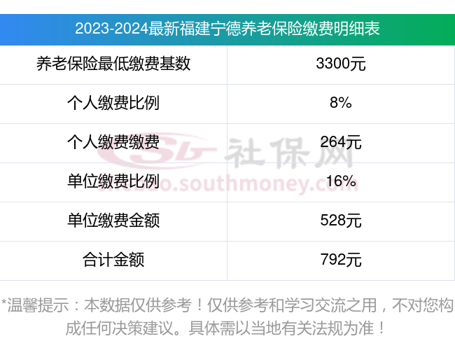 福建宁德养老保险缴费基数2023-2024最新标准,一个月要交多少钱?