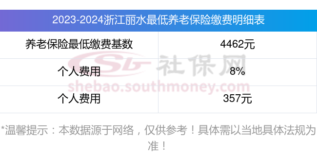 浙江丽水养老保险缴费比例及基数标准2023-2024最新消息