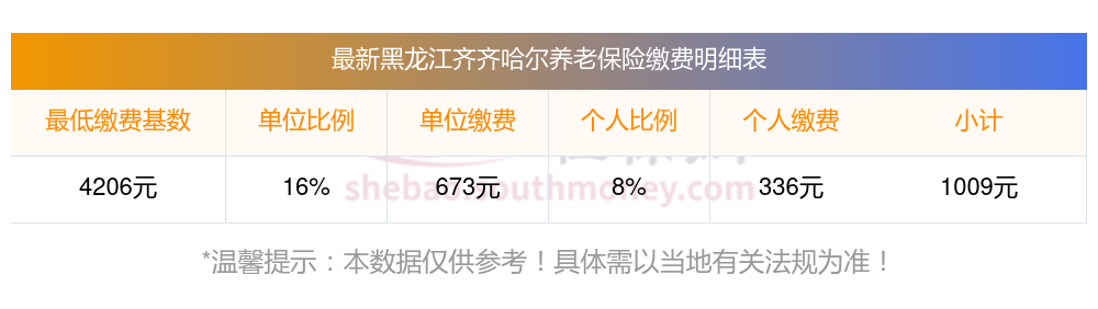 黑龙江齐齐哈尔养老保险缴费基数2023-2024最新标准如下