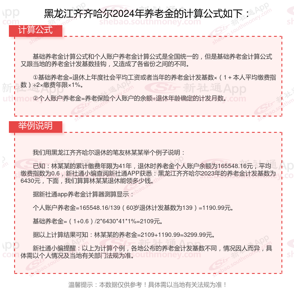 黑龙江齐齐哈尔社保退休能领多少钱?(在线计算举例说明)