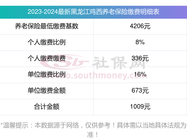 黑龙江鸡西养老保险缴费基数2023-2024最新标准如下