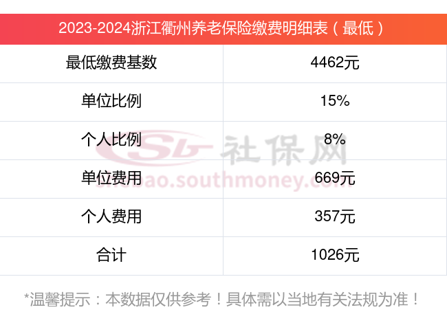 浙江衢州养老保险缴费基数2023-2024年最新标准(最低)要交多少钱一个月?