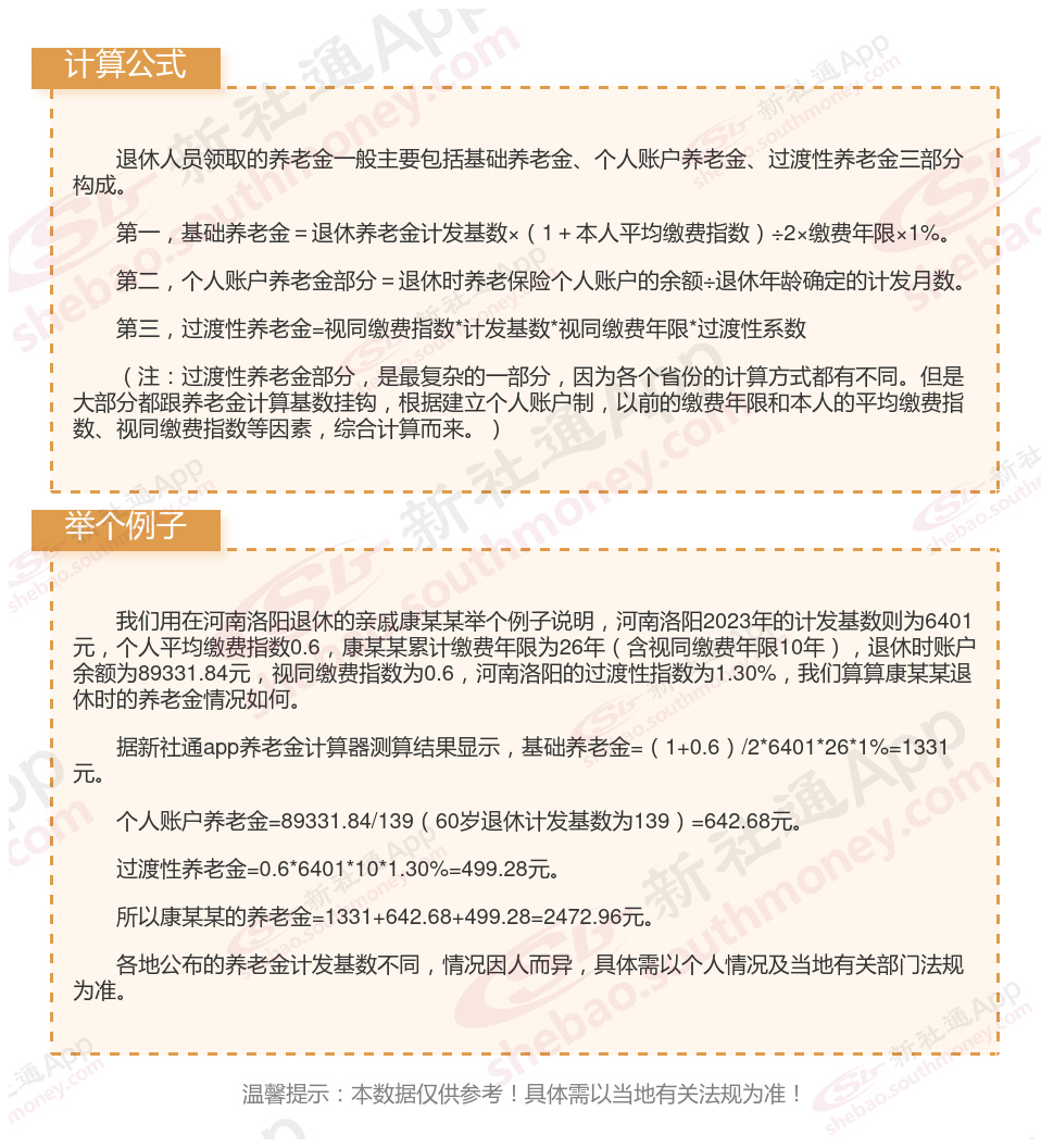 河南洛阳养老金计算公式2024年计算方法(在线计算器)
