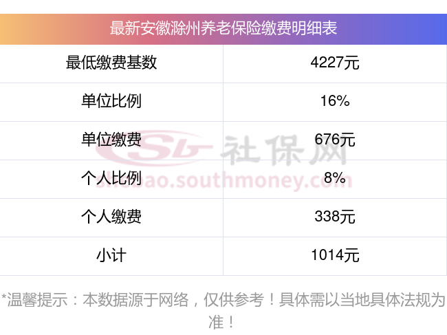 安徽滁州缴费基数2023-2024年最新标准(最低)一个月要交多少钱?