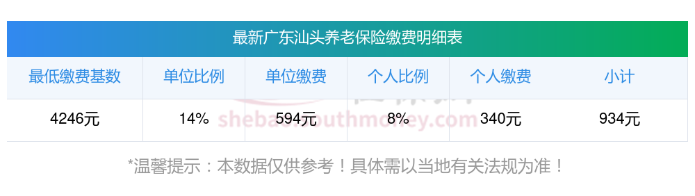 广东汕头养老保险缴费基数2023-2024年最新标准(最低)