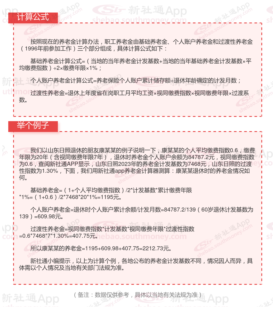 山东日照养老金计算公式2024年计算方法(在线计算器)