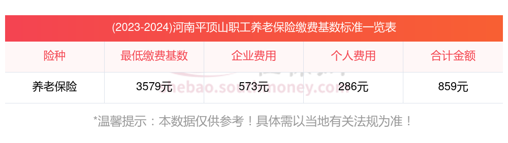河南平顶山养老保险缴费基数2023-2024年最新标准(最低)
