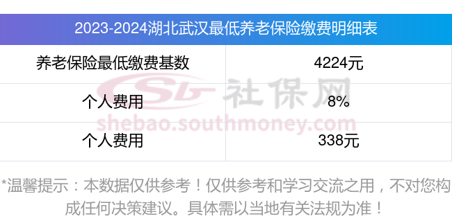 湖北武汉养老保险缴费基数2023-2024年最新标准(最低)