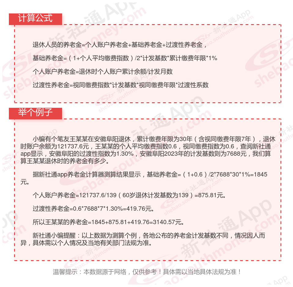 安徽阜阳养老金计算公式2024年计算方法(在线计算器)