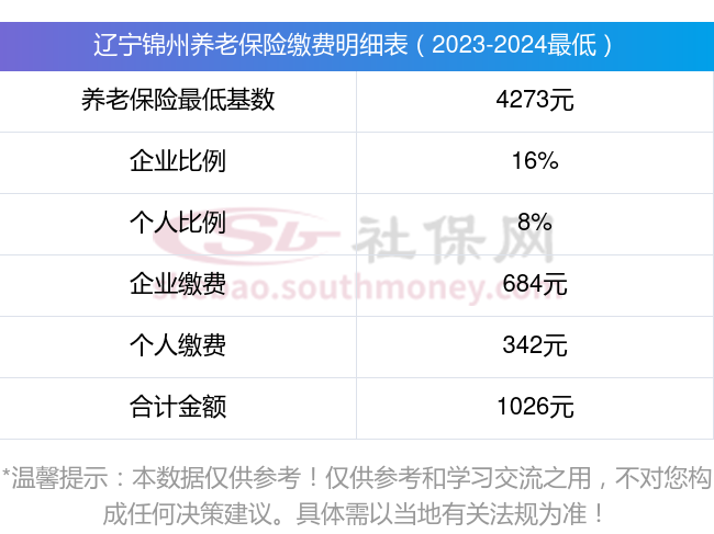辽宁锦州养老保险缴费基数2023-2024最新标准