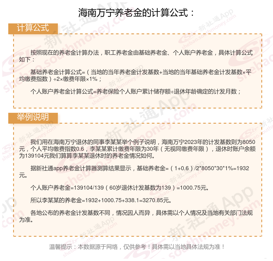 海南万宁养老金计算公式2024年计算方法(在线计算器)