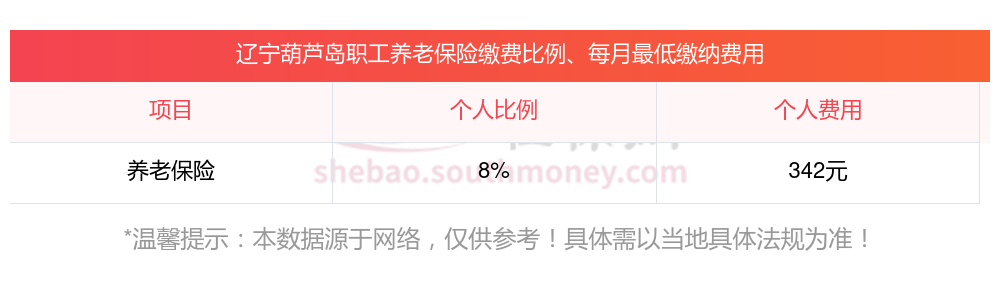 假设辽宁葫芦岛某职工的养老保险缴费基数为4273元,企业缴费比例为16%,职工个人缴费比例为8%。