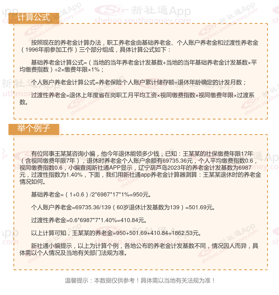 辽宁葫芦岛养老金计算公式2024年计算方法(在线计算器)