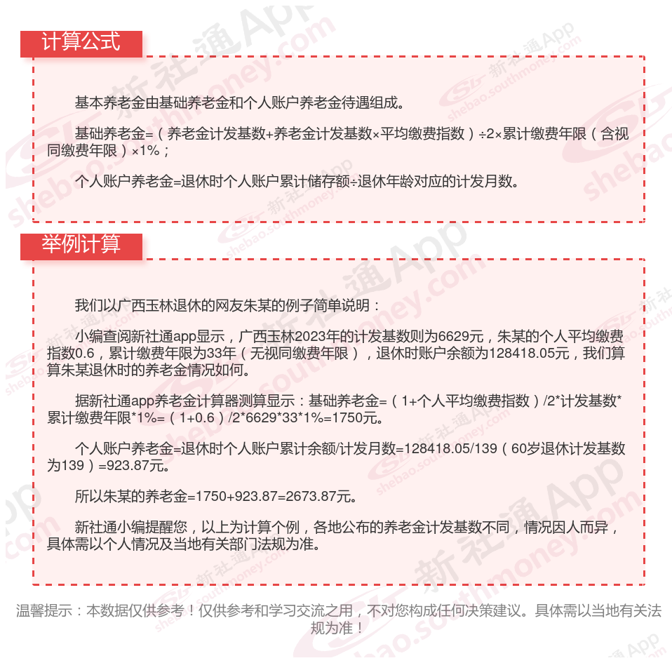 广西玉林社保退休能领多少钱?(在线计算举例说明)