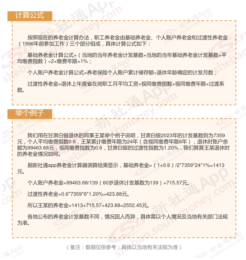 甘肃白银社保退休能领多少钱?(在线计算举例说明)