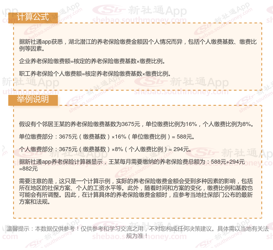 湖北潜江缴费基数2023-2024年最新标准(最低)一个月要交多少钱?