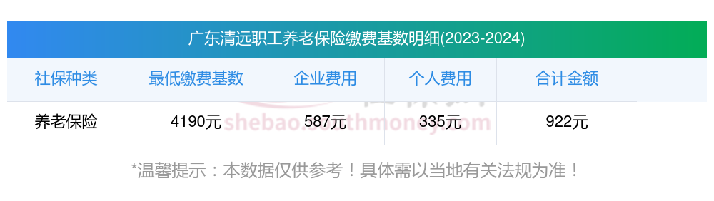 另外,需要注意的是,这些缴费标准可能会随着时间和方案的变化而调整。为了获取最新的广东清远职工养老保险缴费标准信息,建议查阅相关消息或咨询当地社保部门。