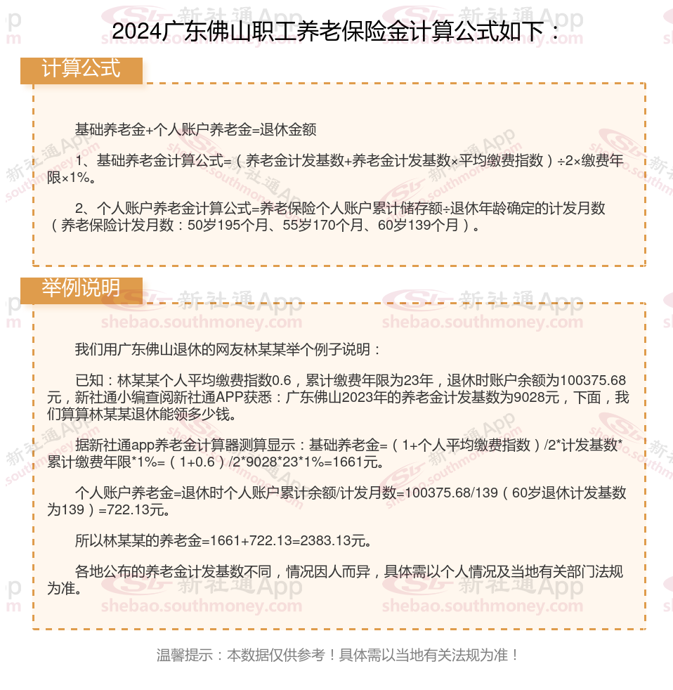 广东佛山养老金计算公式2024年计算方法(在线计算器)