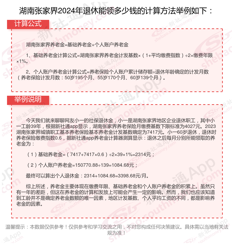 湖南张家界社保养老保险交满能领多少钱?(在线计算举例说明)