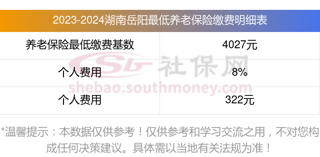 湖南岳阳养老保险缴费基数2023-2024年最新标准(最低)