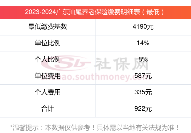 广东汕尾缴费基数2023-2024年最新标准(最低)一个月要交多少钱?