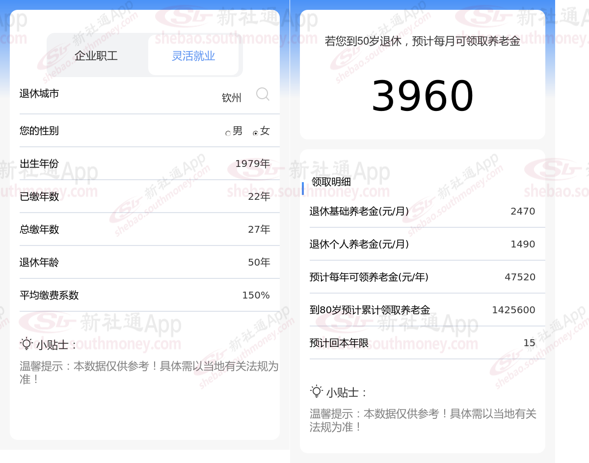 通过新社通APP-养老金计算所得:在保持退休城市、出生年份、退休年龄以及缴费系数这些条件不变的前提下,当个人的社保缴费年限累积达到27年时,其相关计算方式如下: