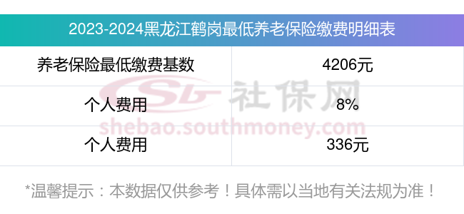 黑龙江鹤岗养老保险缴费基数2023-2024年最新标准(最低)一个月要交多少钱?举例说明