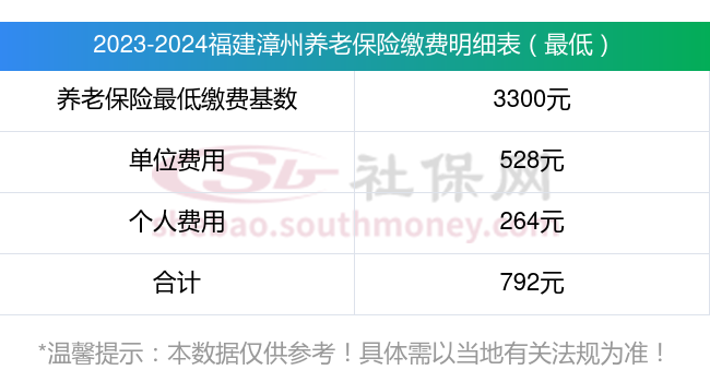 福建漳州养老保险缴费基数2023-2024年最新标准(最低)一个月要交多少钱?举例说明