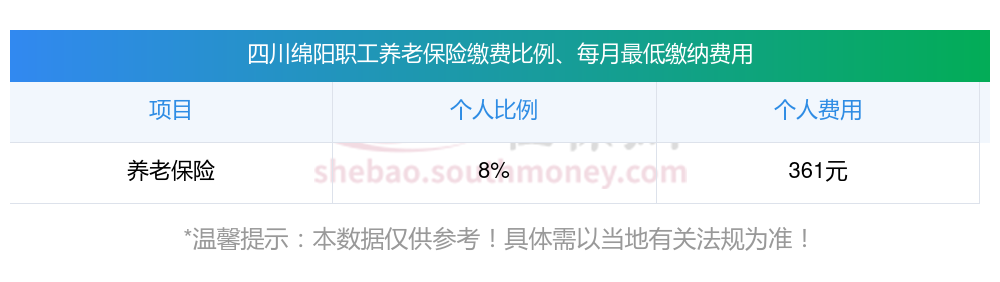 据新社通app获悉,四川绵阳的养老保险缴费金额因个人情况而异,包括个人缴费基数、缴费比例等因素。以下是一些参考信息: