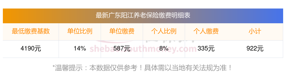 广东阳江养老保险缴费基数2023-2024年最新标准(最低)要交多少钱一个月?