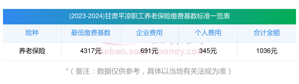 甘肃平凉养老保险缴费基数2023-2024年最新标准(最低)