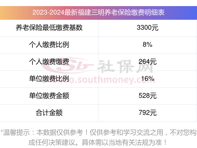 福建三明养老保险缴费基数2023-2024最新标准,一个月要交多少钱?