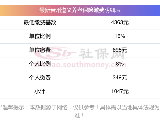 贵州遵义养老保险缴费基数2023-2024最新标准 一个月要交多少钱?