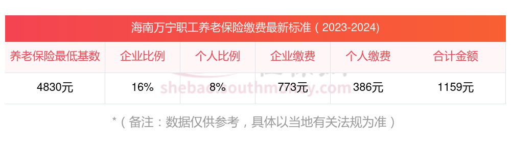 据新社通app显示,2023-2024年海南万宁职工养老保险的缴费标准是根据缴费基数来确定的: