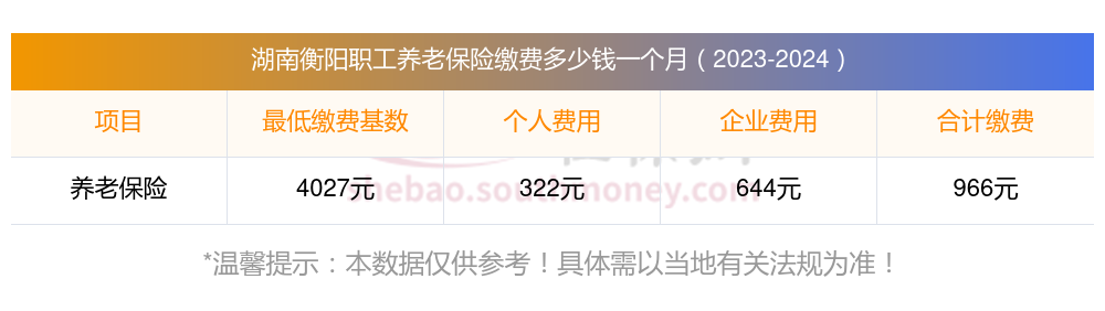 2023-2024年湖南衡阳养老保险缴费比例及基数标准(最新)