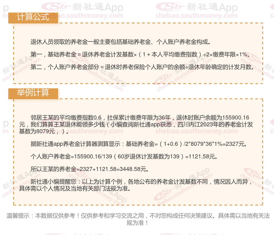 四川内江养老金计算公式2024年计算方法(在线计算器)