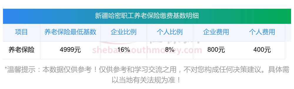 新疆哈密养老保险缴费基数2023-2024年最新标准(最低)