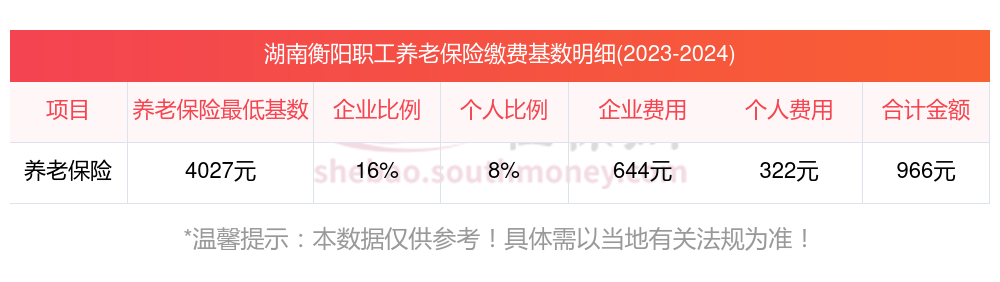 养老保险一个月要交多少钱?湖南衡阳缴费基数2023-2024年最新标准(最低)